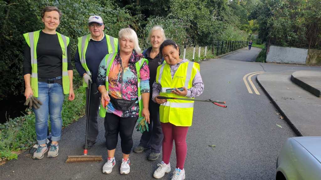 Several groups joined up to tackle the weeding along the banks of the River Ward. With so many willing hands, this was done in record time.