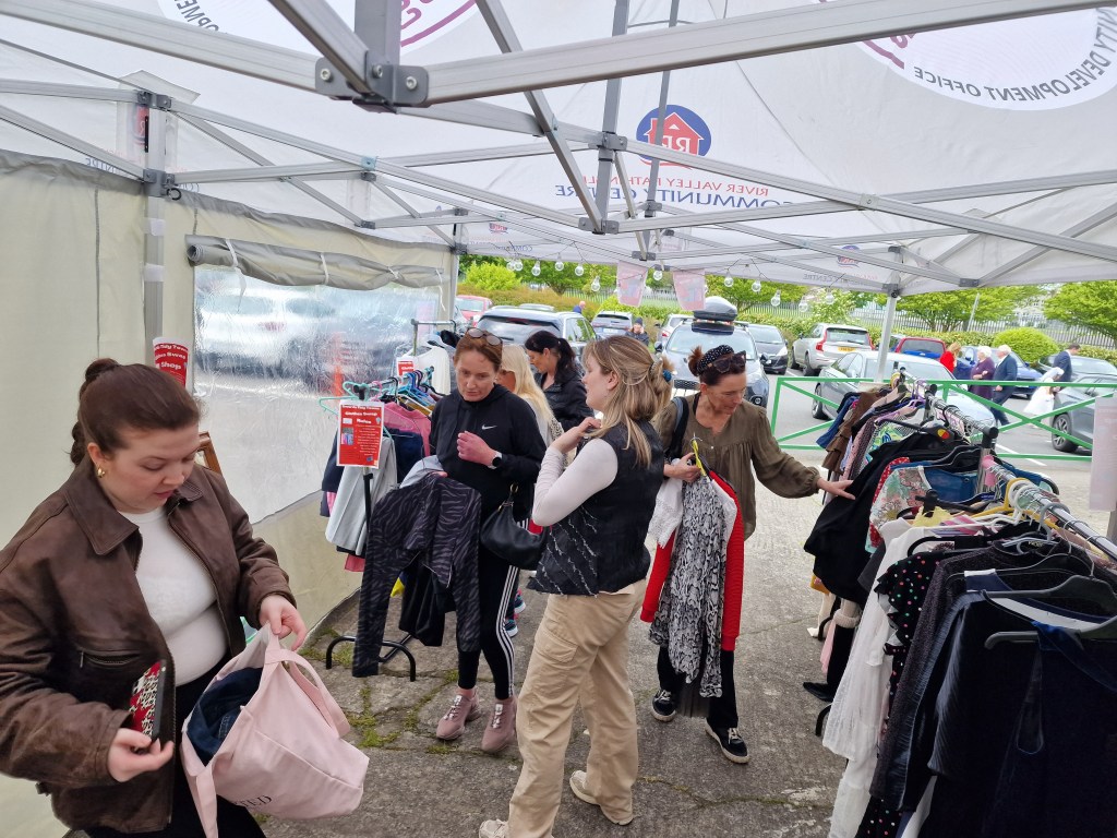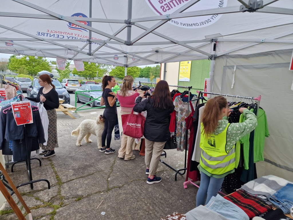 Ramune with the help of local resident Emma O’Toole, who is also President of the Environmental Society at Maynooth University organised STT’s first Clothes Swap event. They were supported by the management of the River Valley Community Centre, who allowed us to operate in the carpark outside their premises. The organisers are also very grateful to local residents for donating clothes rails and hangers for the event.