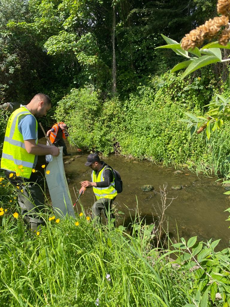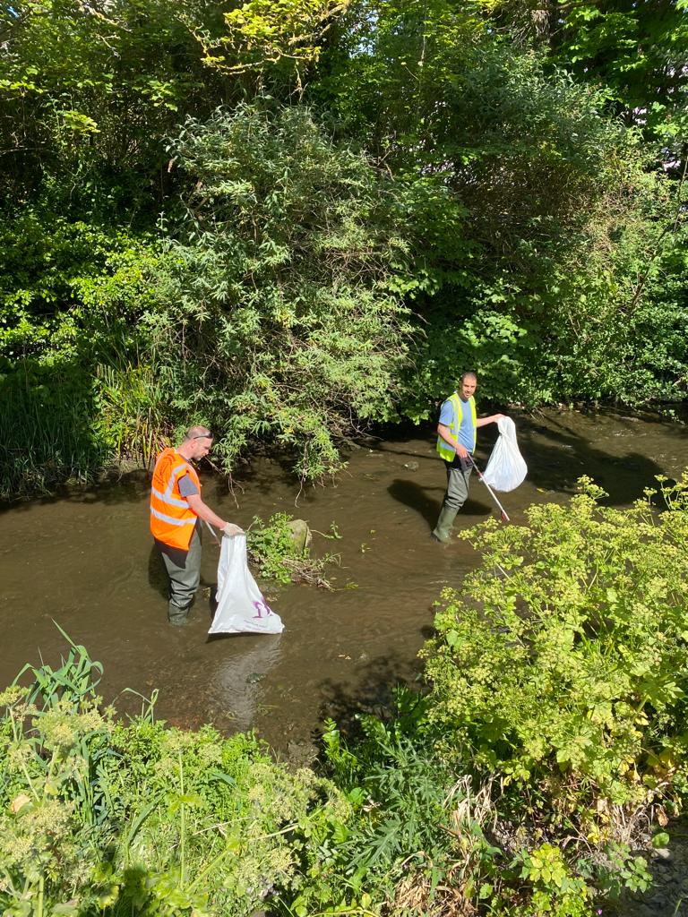 On the previous Saturday six young men had joined our group. Luckily they were with us again for the river clean up day. They were keen to get into the River Ward, and hand up heavy bags of rubbish to those assisting on the banks. Local councillor, Ian Carey, also joined the workers along the river, and really enjoyed the experience.