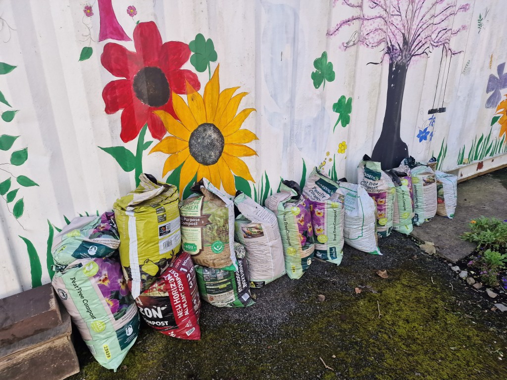 A new leaf mould (old cage replacement) was installed and filled at Pinnock Hill on October 14. Thirteen bags of two-year-old compost from the previous years were taken to our polytunnel to be used in our gardening projects.