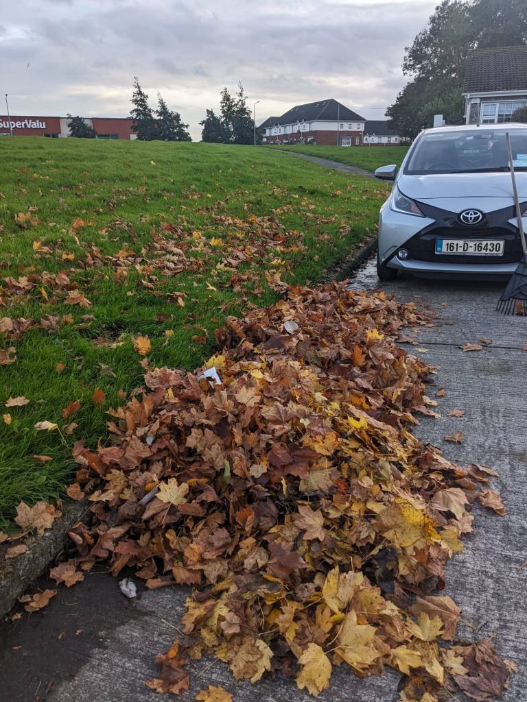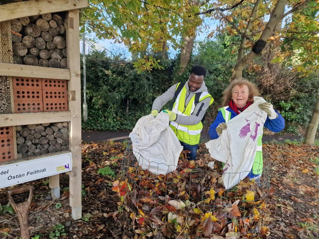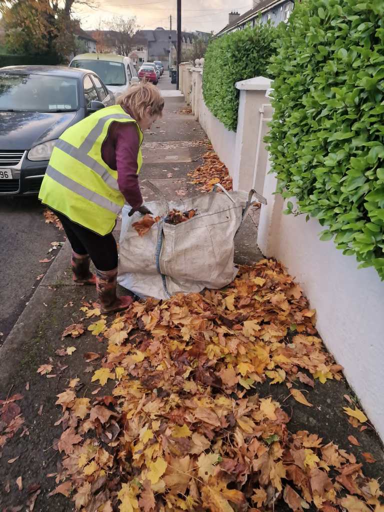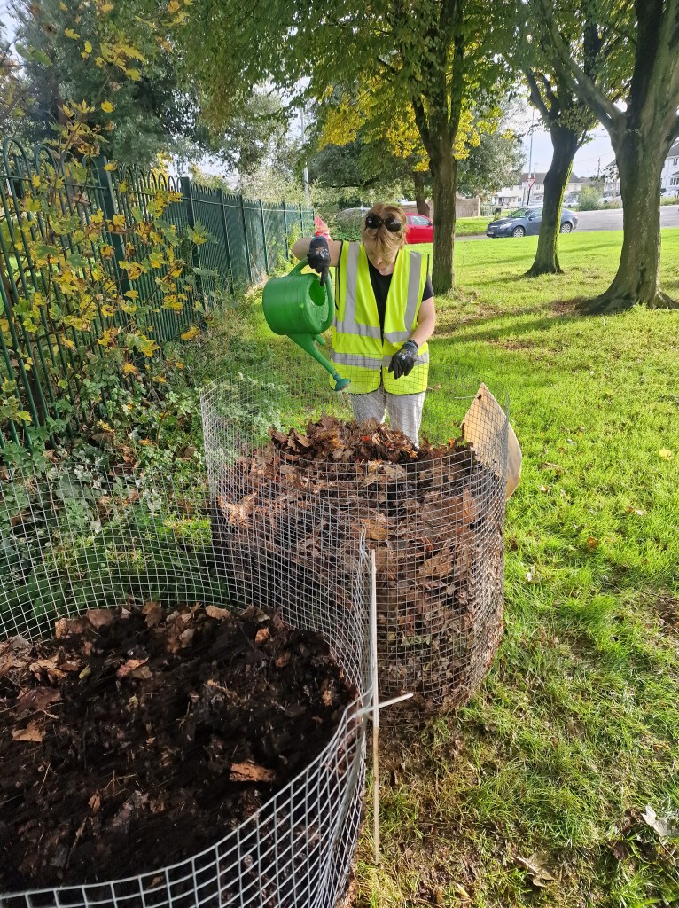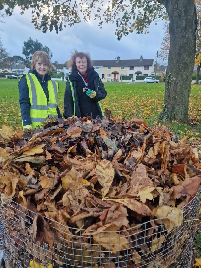 Ramune received 6 extra cages from Craig Benton through FCC, as she’d used up all 8 of the original quota at the start of the season. All 14 new cages (a replacement of old cages in some cases) were installed and filled this year in Swords. Currently, Swords Tidy Towns members are looking after 26 leaf mould cages in various locations in Swords.