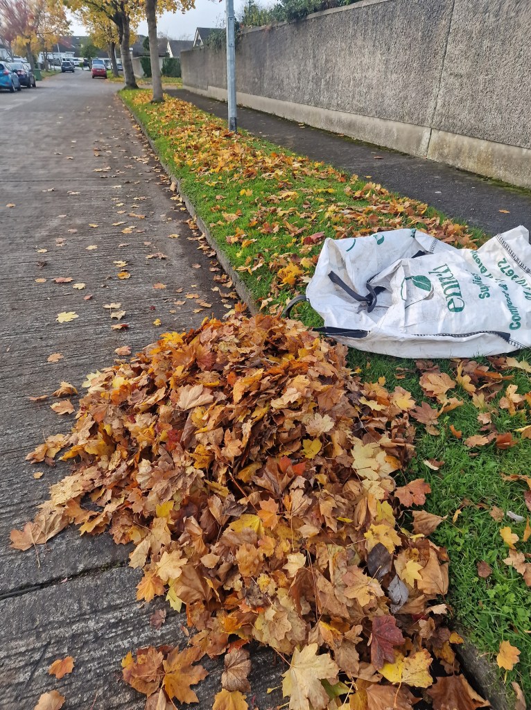 It’s been a particulary productive season for Ramune, STT member and master composter. She has taken advantage of the mesh materials, provided by Fingal County Council, and the abundance of leaves to extend her leaf mould composting programme in Swords.