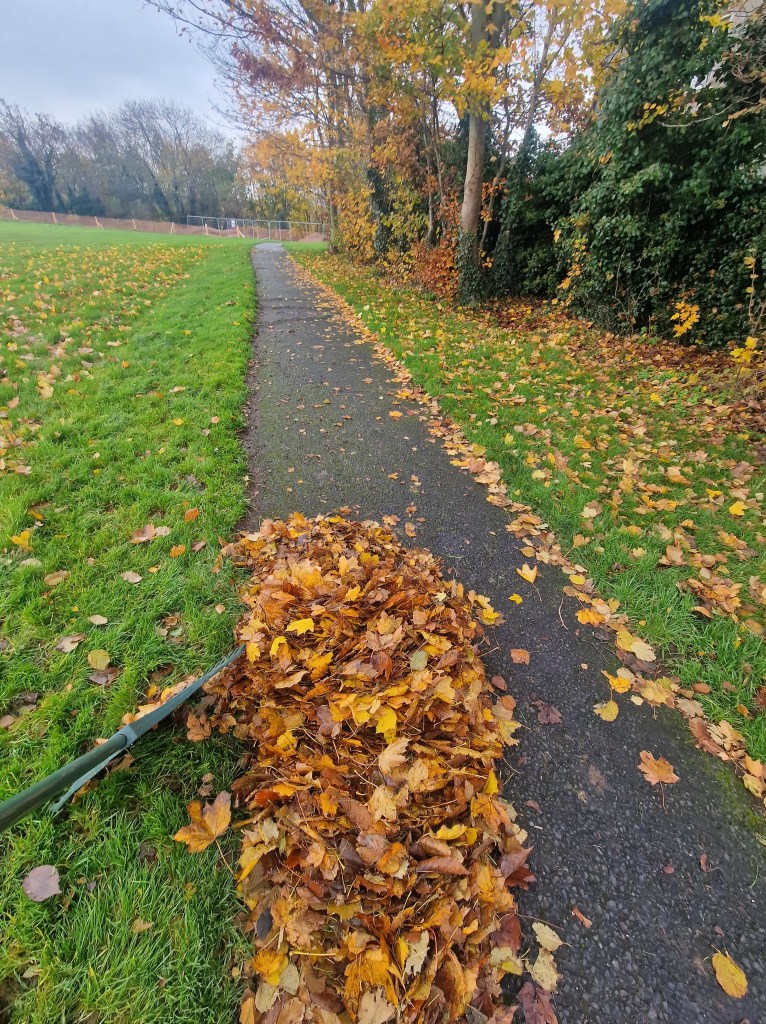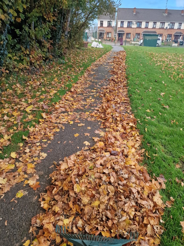 A by-product of this scheme was the prevention of slipping accidents. We cleared paths of fallen, wet leaves as we worked.