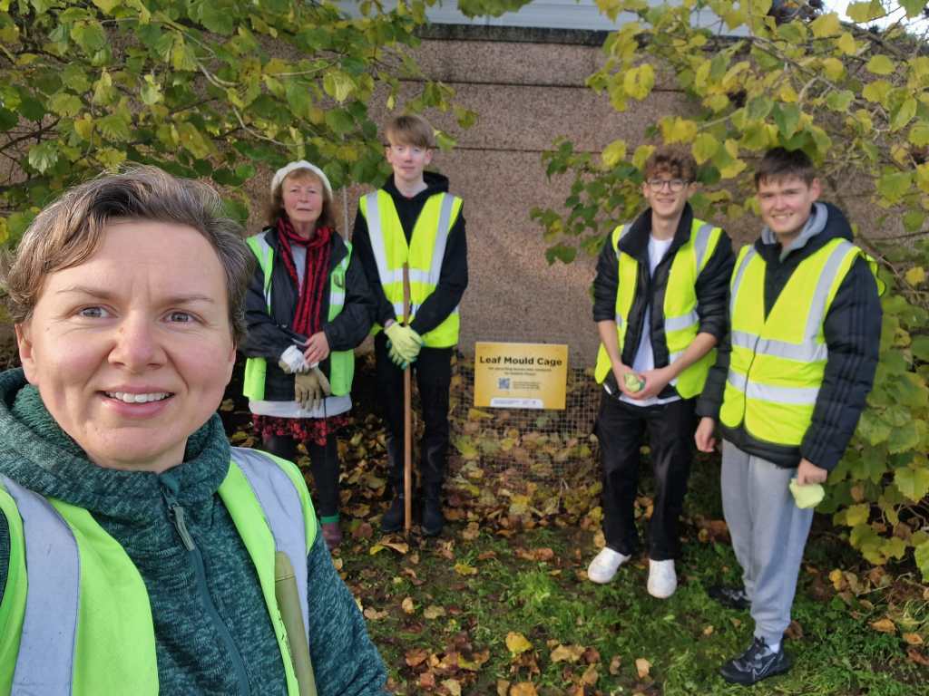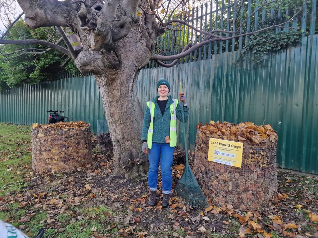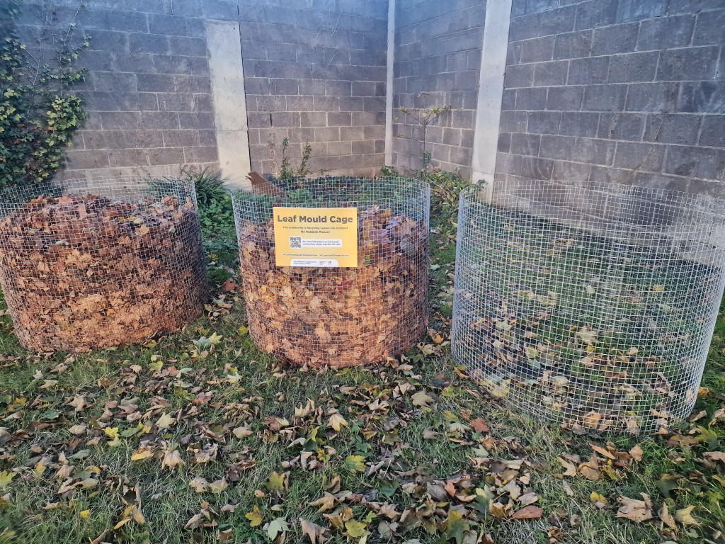 It was wonderful to see how many residents of the town became interested in learning more about this type of composting, as they saw us go about our work. So leaf cages may appear in more housing estates and in new locations around town next autumn.Β