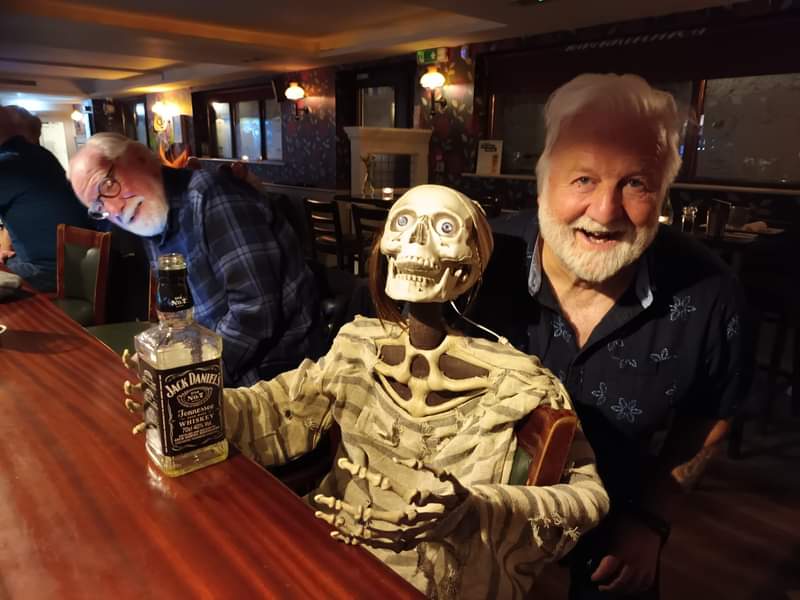 Our festivities continued at The 44, which was decorated very imaginatively. Grace almost ended up in the clutches of a strange creature on the wall. Another strange character sitting at the bar had obviously been waiting a long time for his drink!