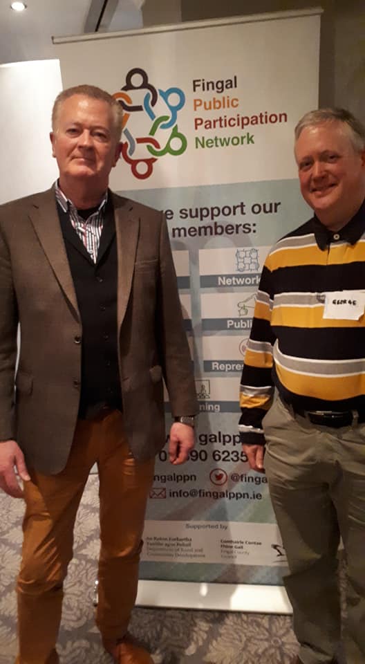 Mary Maxwell, Matt Cullen and Ken Duffy attended the Fingal Public Participation Network AGM in the Carnegie Hotel Swords in November 2017. In the second picture Ken Duffy and George Mongey are attending the same meeting in May 2019.