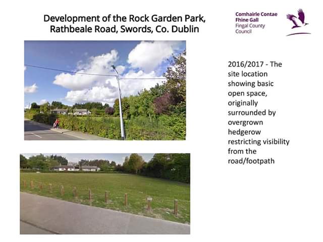 Rock Garden Park derived its name from its former use as a quarry. For many years it remained an empty paddock, before Swords Tidy Towns and Fingal County Council collaborated to turn it into a valuable public amenity. Two of our members, Mary Maxwell and Matt Cullen, were involved in the design of this park.