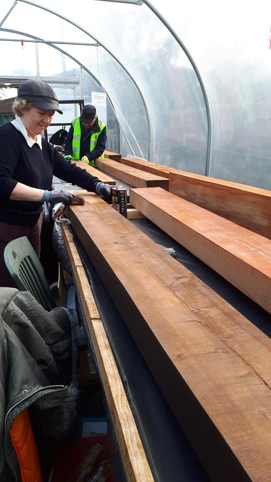 STT members Gerry Brennan and Paddy Hughes ably installed the new fence. Kim from our polytunnel did a wonderful paint job.