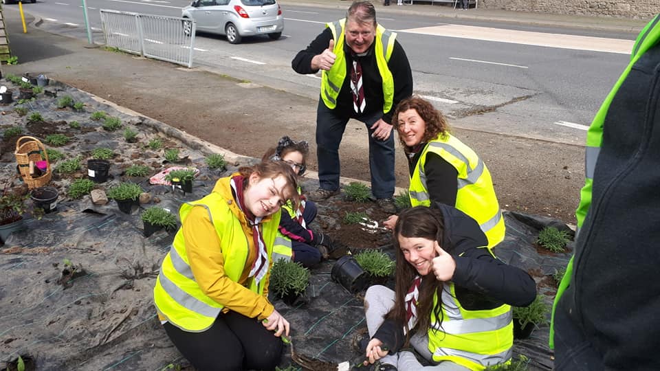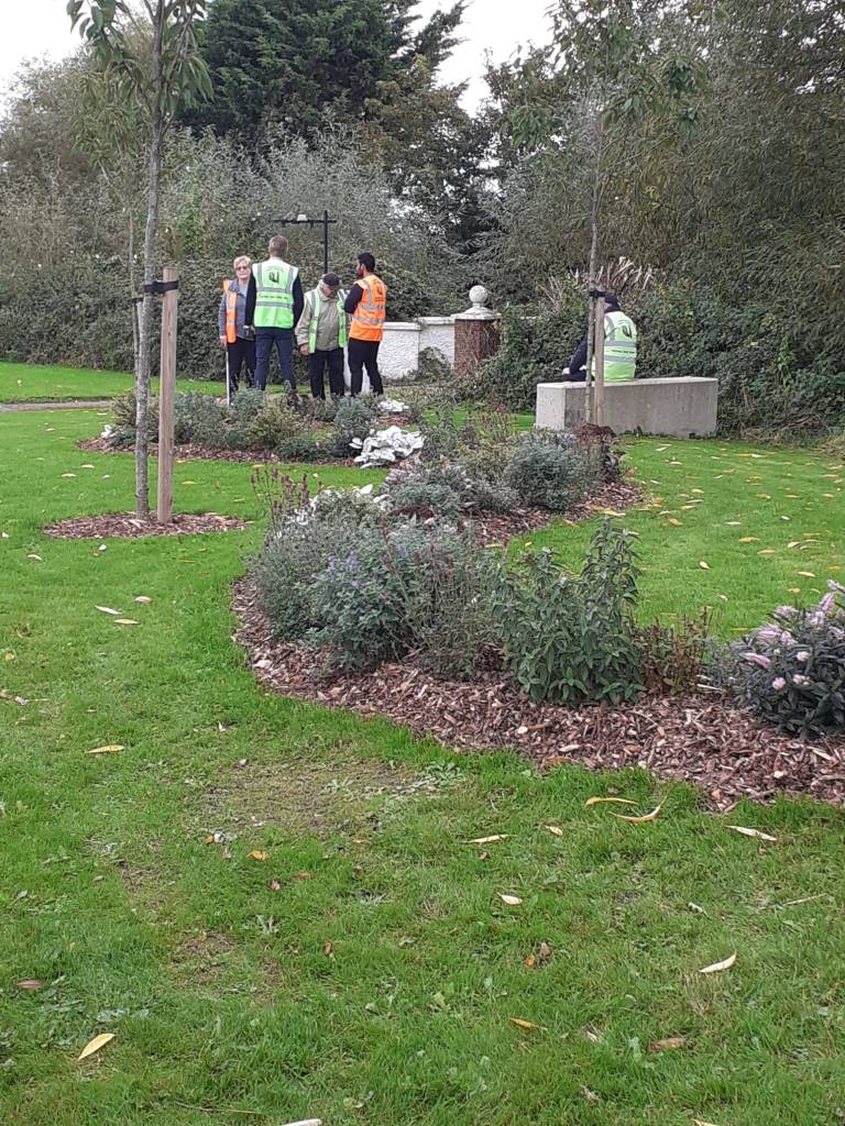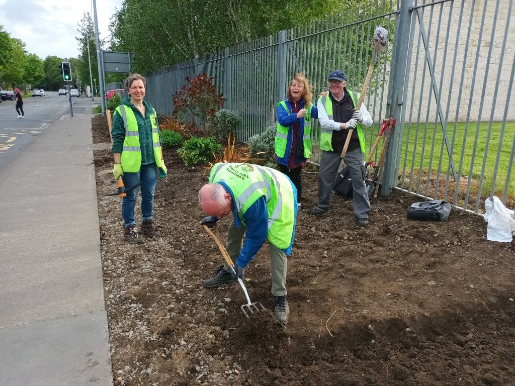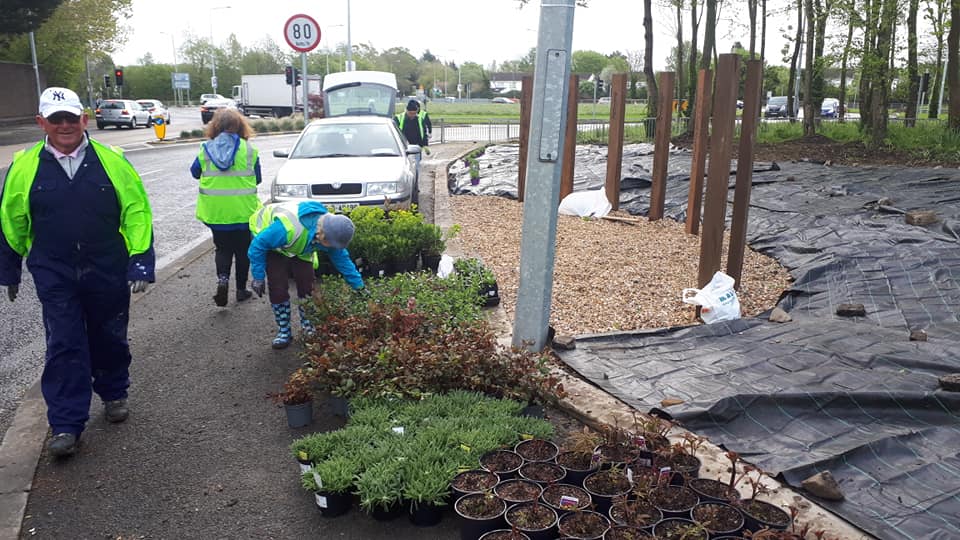 Groups of our enthusiastic volunteers spent many Wednesday evenings and Saturday mornings digging and weeding the site close to the Malahide Roundabout. Excellent advice for the choice of plants and how to plant them was given by Martin Nulty and Martin Tully. Fingal Council Operations Department under Colin Rigney cleared the site before we dug. They provided the mulch, which was spread by our members after our planting. We were joined one Saturday morning by the 164th Brackenstown Bobcats cubs, who helped with the planting.