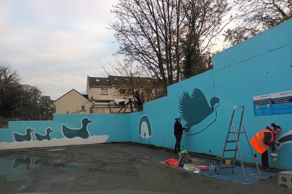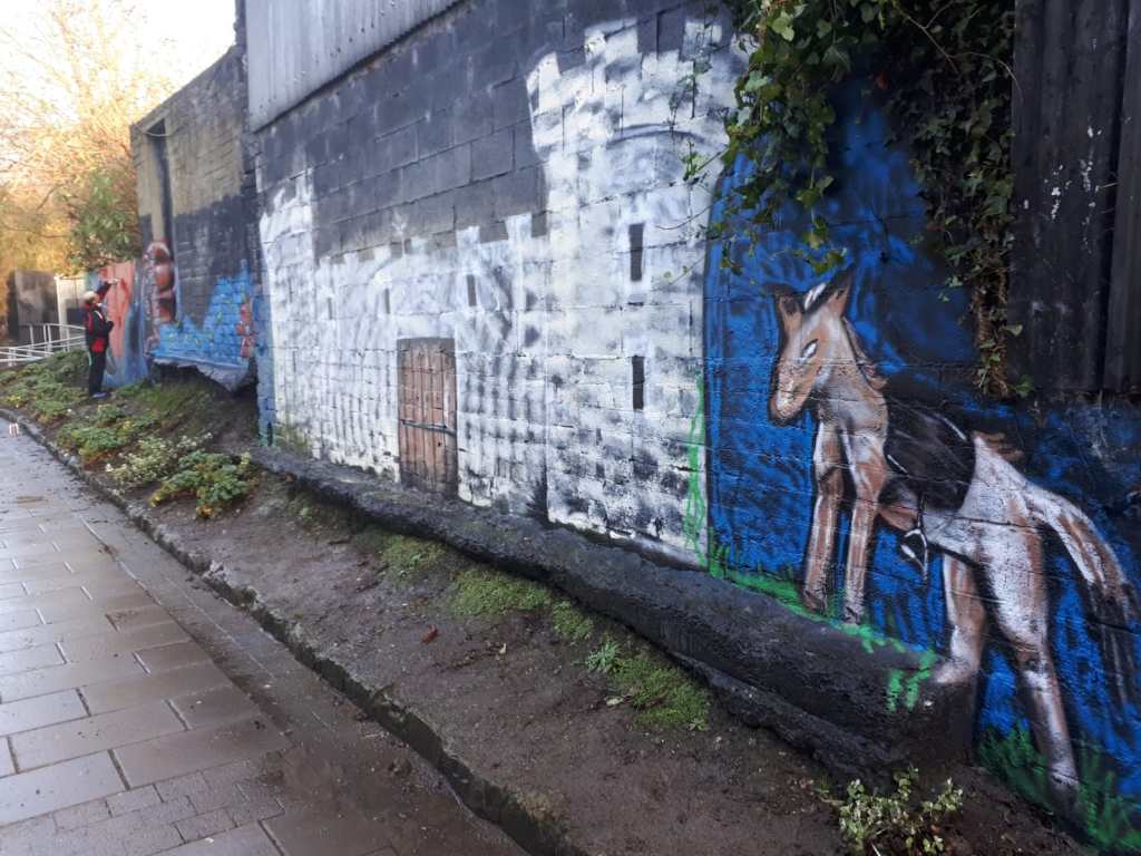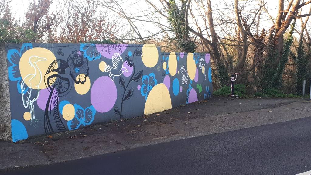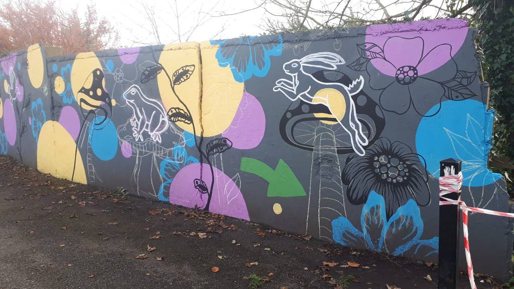 Members of the public will enjoy seeing this latest mural as they stroll along the banks of the River Ward. Previously the blank, ugly car park wall was the first thing to be seen as one entered the walkway next to the Old Schoolhouse pub/restaurant.