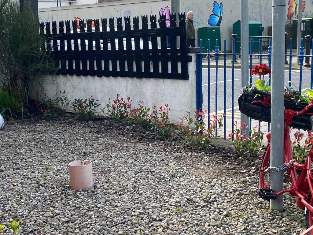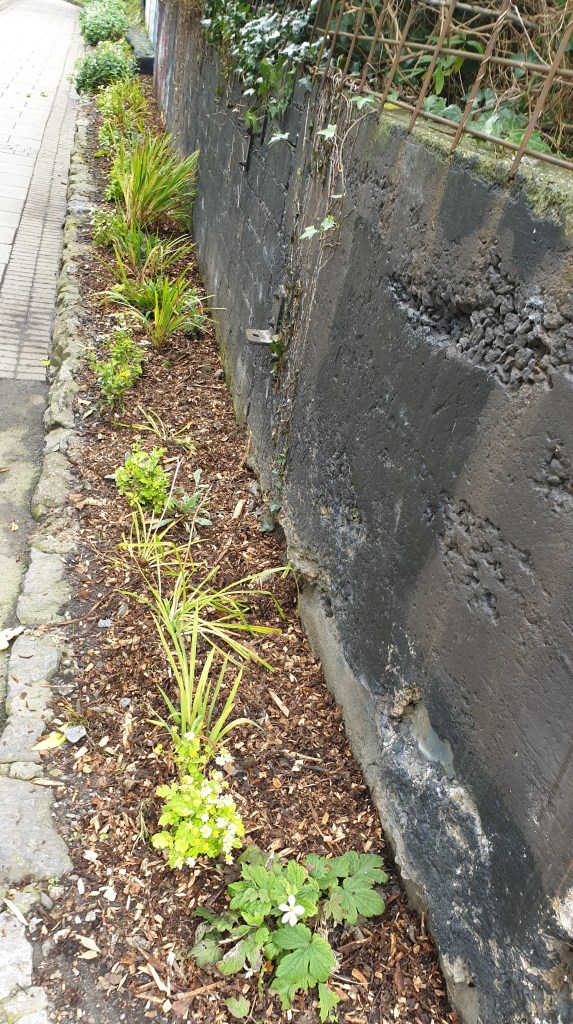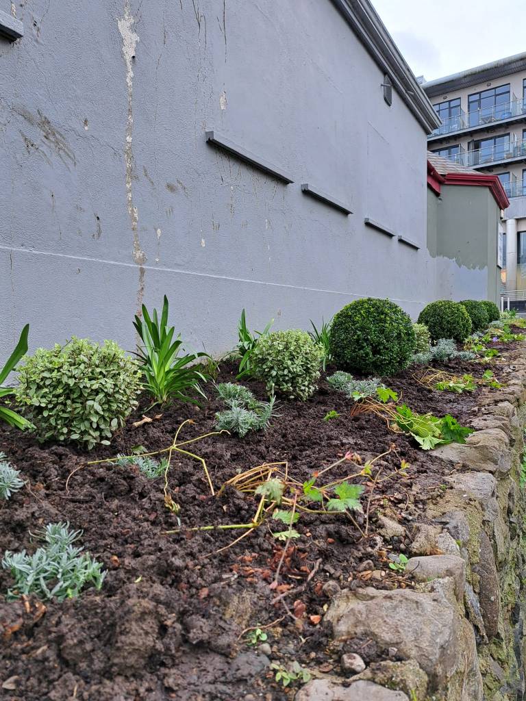 Ken Duffy, our chairman, spoke to the owners of Colourtrend on Swords Main Street about possible sponsorship for our latest gardening project. The little raised garden area and wall next to their shop looked neglected and very unattractive. Management was happy to support us, which was wonderful.