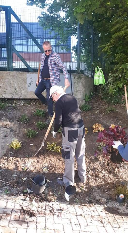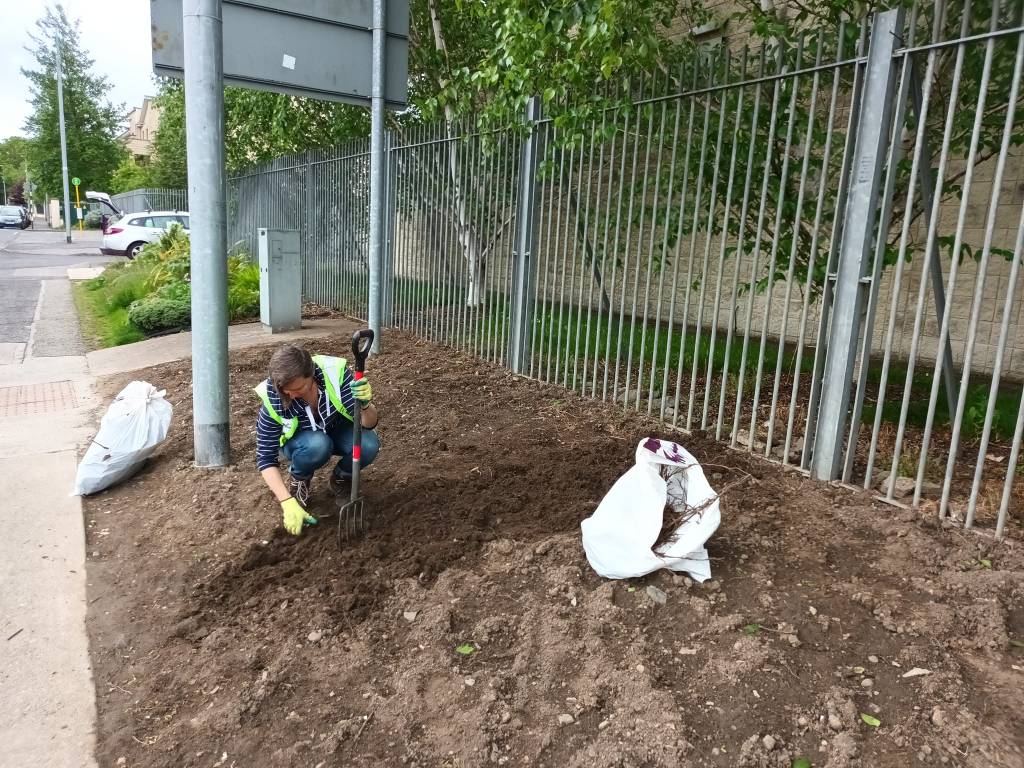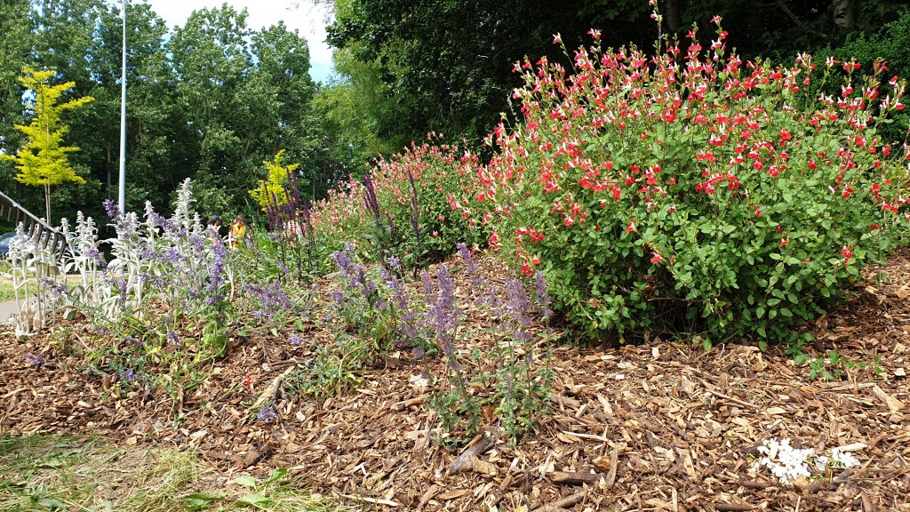 In May 2021 we have restructured and slightly expanded the existing flower bed, planted some more pollinators friendly plants and mulched the the flowerbed to slow down the weeds. This flowerbed was formerly looked after by FCC.