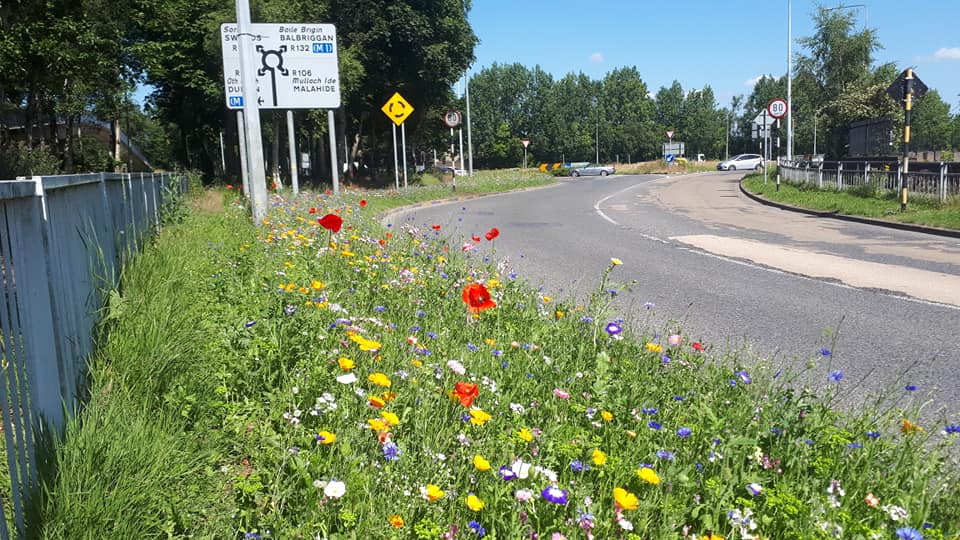 At the side of Drynam Road off the Malahide Road we have transformed a large green area into a Wildflower Garden, the site has been cleared and rotavated and the seeds have been planted. This project was funded by the DAA.