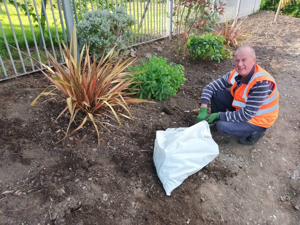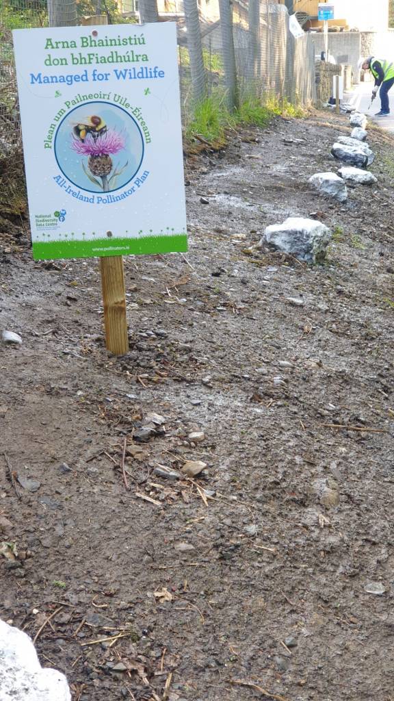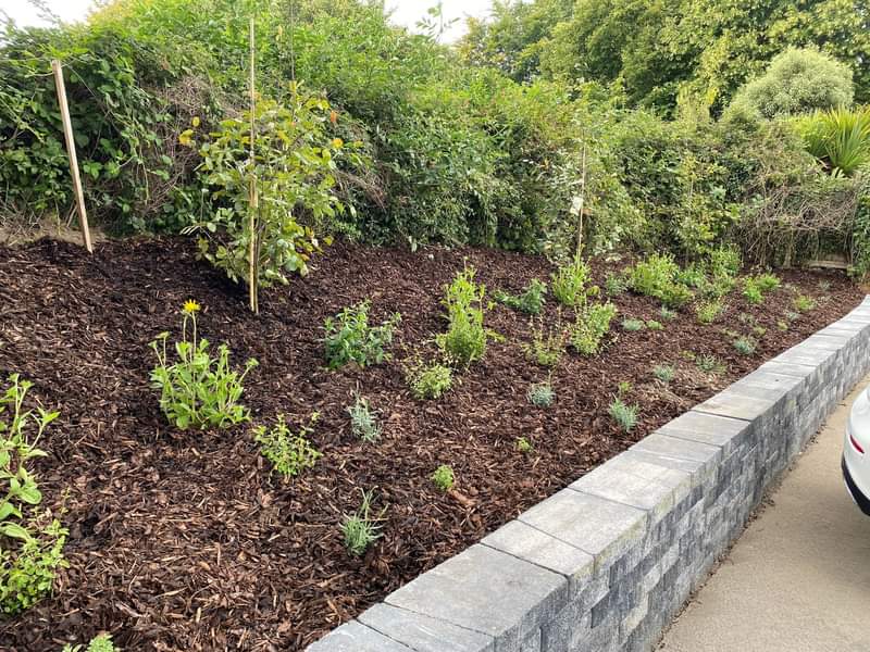 We have doubled the size of the current flower bed at one of our Welcome to Swords signs near the Fingallians GAA roundabout by adding a good amount of pollinators friendly plants. We used mulch as a way to suppress the weeds.