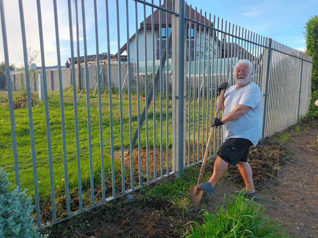 Ramune, Mary and Billy removed the grass edging at the front of flower bed.