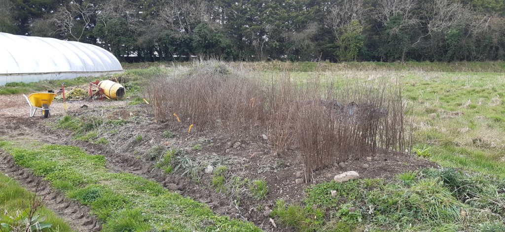 Most of the existing plants were removed, and were returned to our polytunnel to be used in other gardening projects.