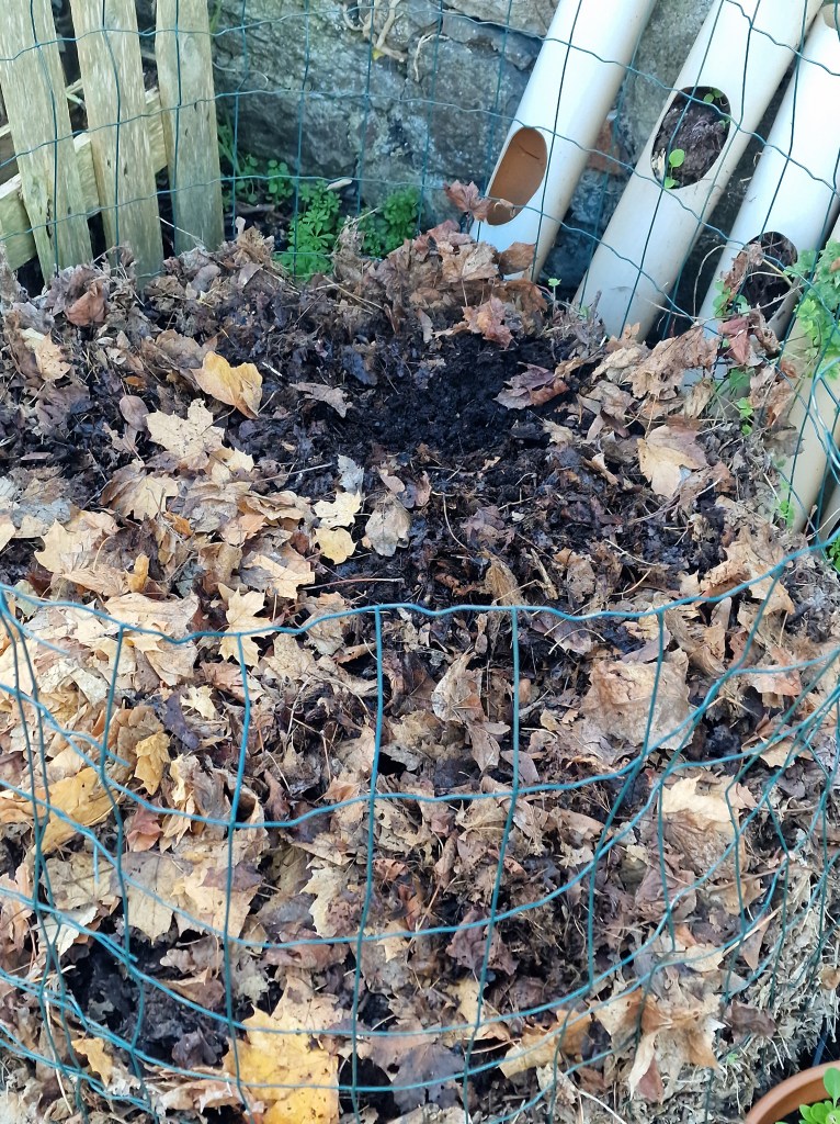 At our polytunnel our master composter, Ramune, has been overseeing our composting beds and leaf mould cages.