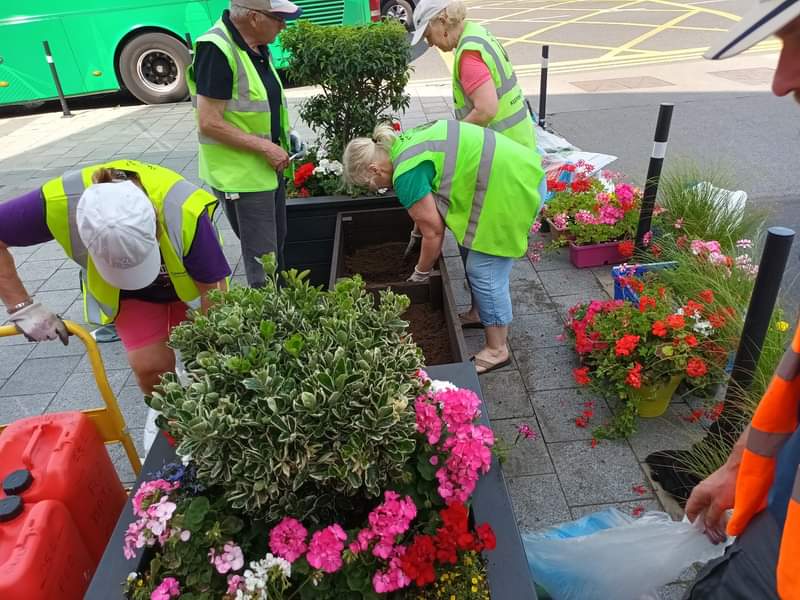 Growing, planting and maintaining flower beds, planters and hanging baskets have become a major part of the work of STT. Since 2016, our new polytunnel has been managed by two green-fingered members, Mary Maxwell and Rose Brennan. They choose the appropriate plug plants and plant them at the polytunnel, where they are looked after by Rose and TUS workers. They also use cuttings from the hanging baskets at the end of summer, and grow new flowers for displays around the town for the following summer. This ensures that we have sustainable and affordable plants to create a colourful display about the town in all seasons. They create hanging baskets, which are sold to local businesses to enhance their premises.