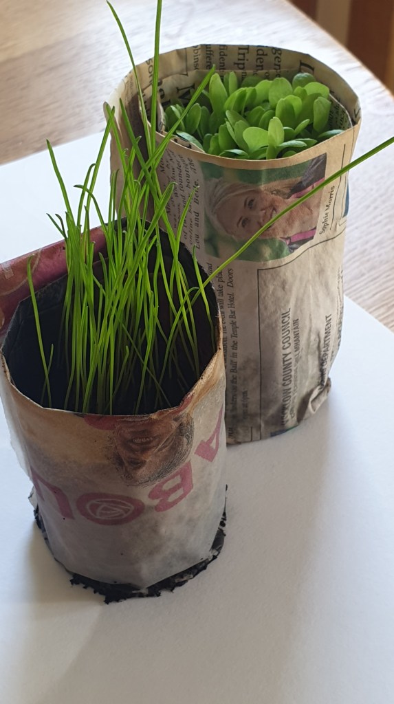 Making your own seedling pots is quick, affordable, environmentally friendly and fun to do with children. These pots are fully biodegradable and so the seedlings can be replanted ouside without being removed from the pot.