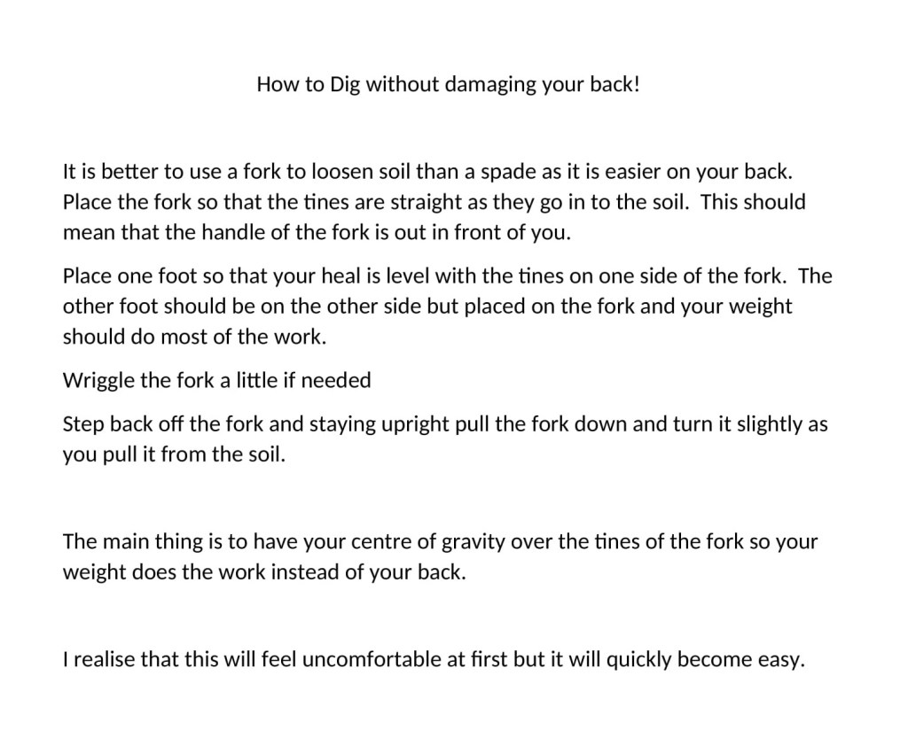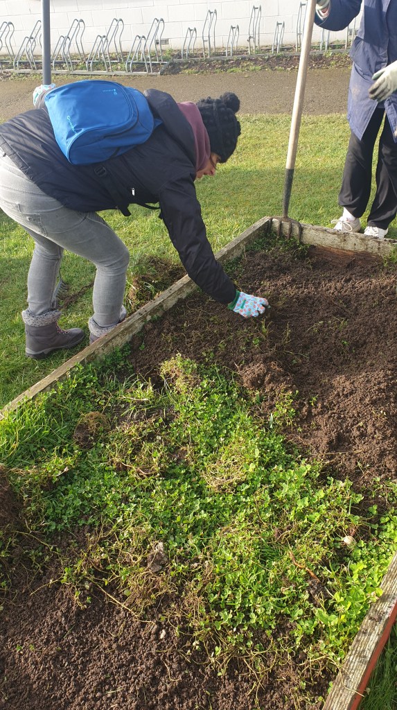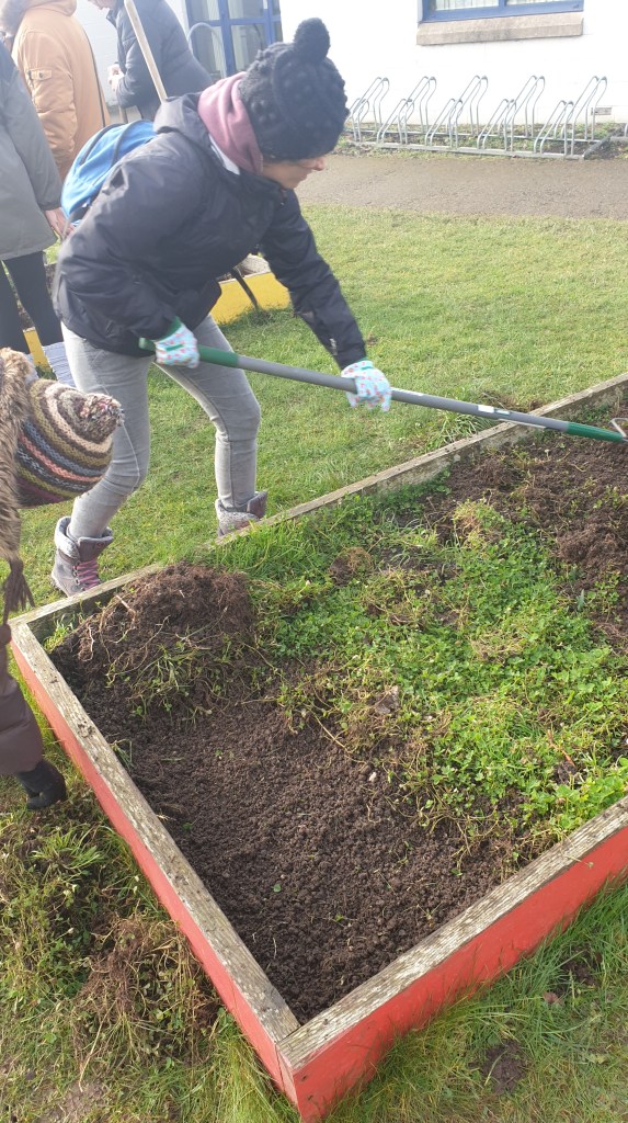 Thank you to Aoife Munn for teaching us the proper way to use garden fork while digging so we do not get our backs hurt. A very important tip – invest in a longhandled fork as it allows for better leverage whilst saving from back strains.