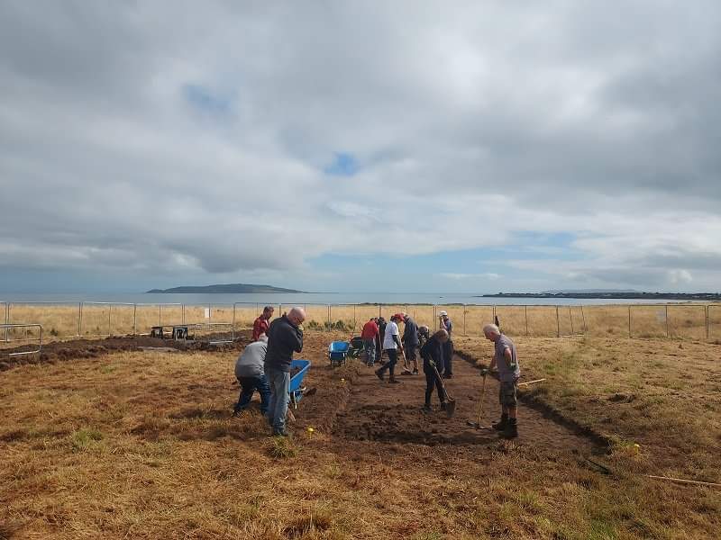 The volunteers, aged 18 to 73, came from a wide variety of backgrounds but were united by a common love of history and pre-history. Amazing stories were shared and there was so much laughter. In the quiet moments we could listen to the sounds of crashing waves, and enjoy the views over Rush, Lambay Island and the village of Loughshinny.