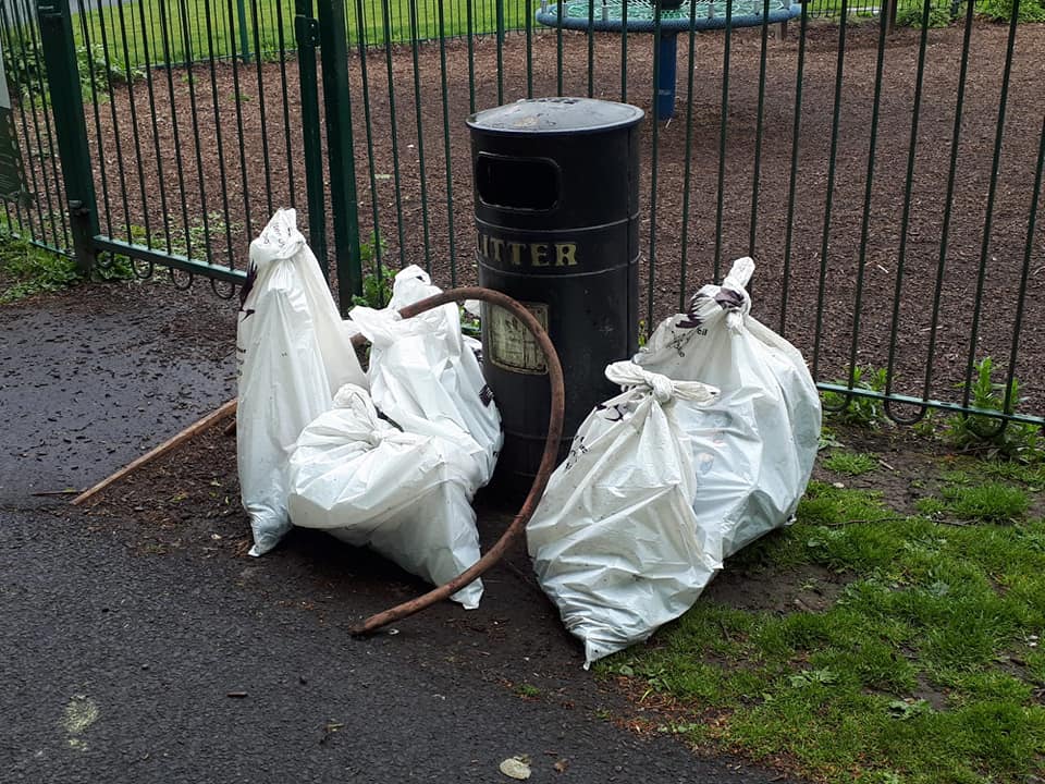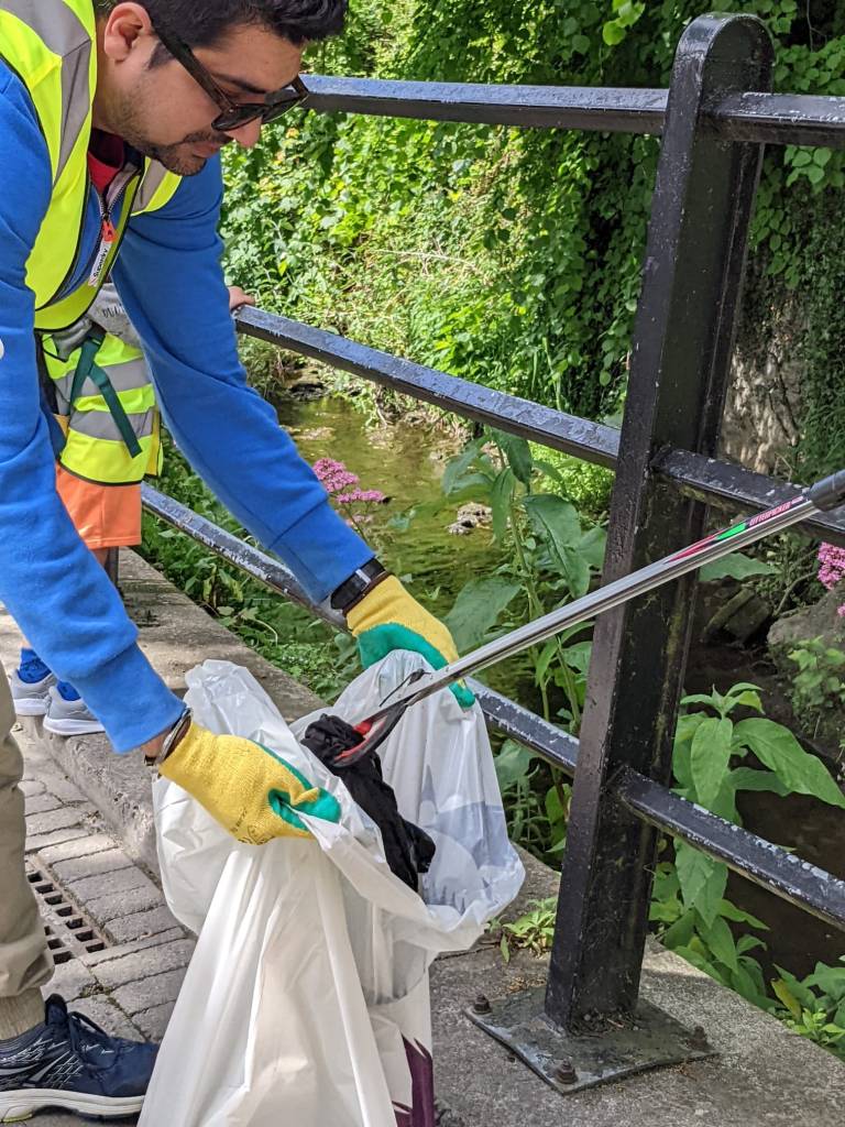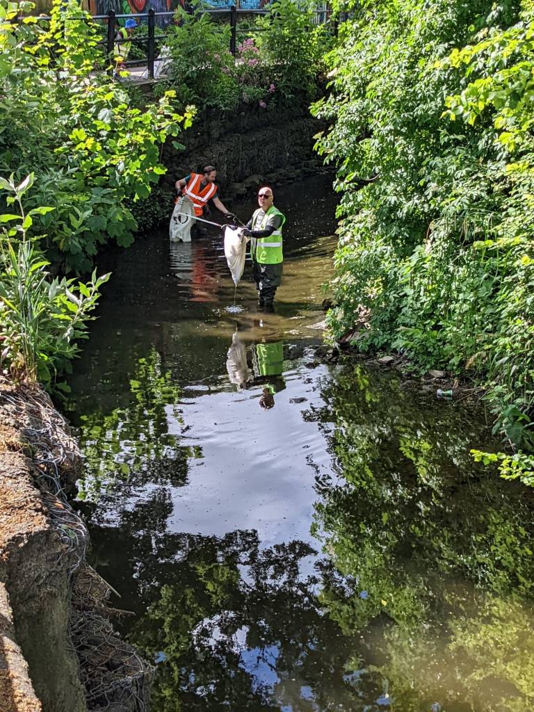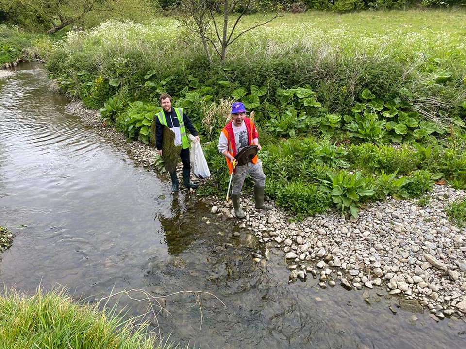 The weather was just perfect for STT’s river cleanup on Saturday, May 28. We had an pleasing turnout of volunteers of all ages, who were keen to tackle the litter in the River Ward. Those wading in the river passed up bags of discarded bottles, cans and general waste to the helpers on the banks. In total 21 bags of litter were taken to the designated collection point.Β