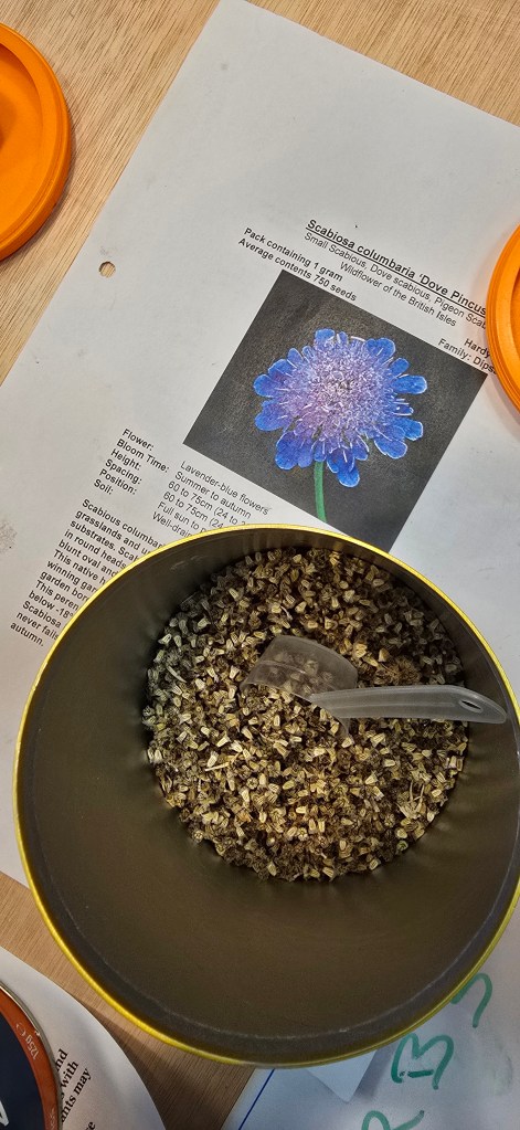 Weβre also continuing to keep things as sustainable as possible. Thereβs lots of creativity when it comes to reusing materials – yogurt and noodle pots are a common sight as plant containers, and we make our own plant labels by cutting yogurt pots into strips. For seeds, we reuse old envelopes or make new ones from scrap paper using simple folds – no glue or tape needed. It all adds to the spirit of reducing waste and making the most of what we already have.