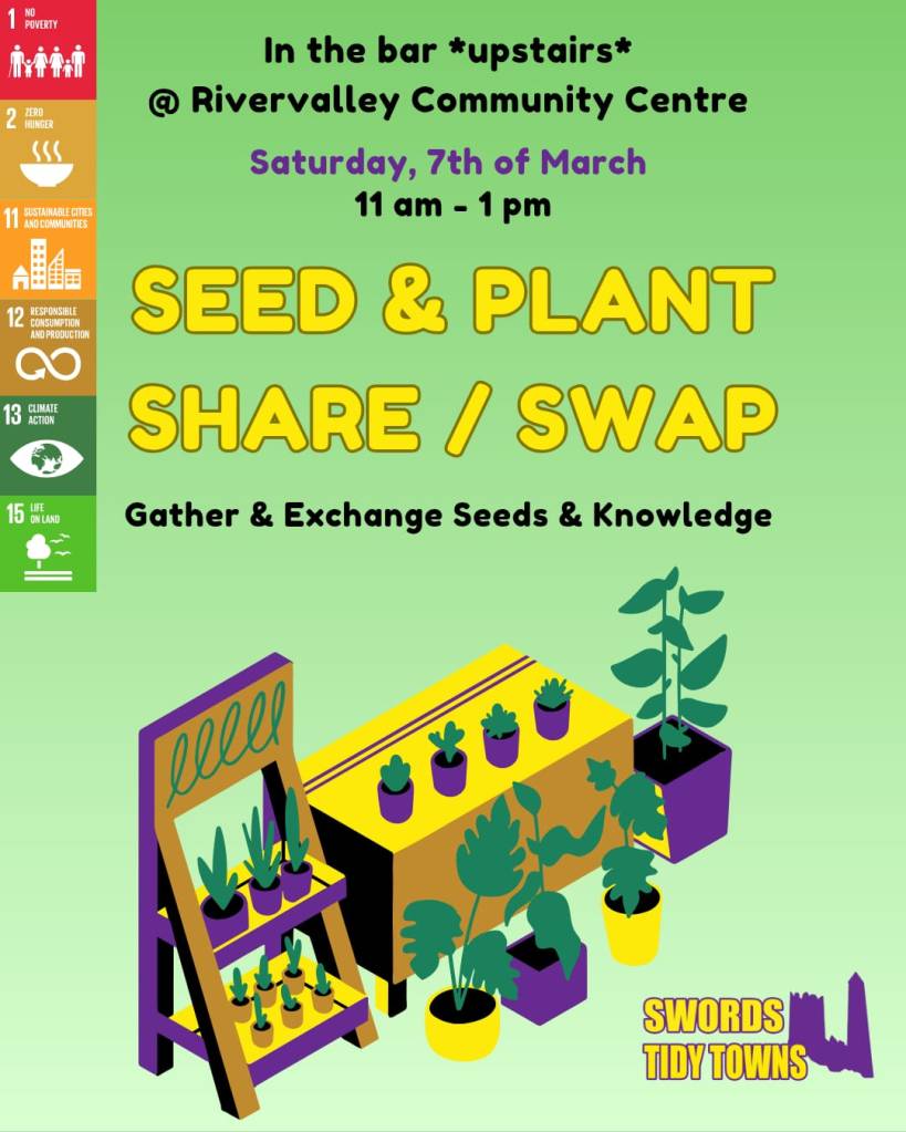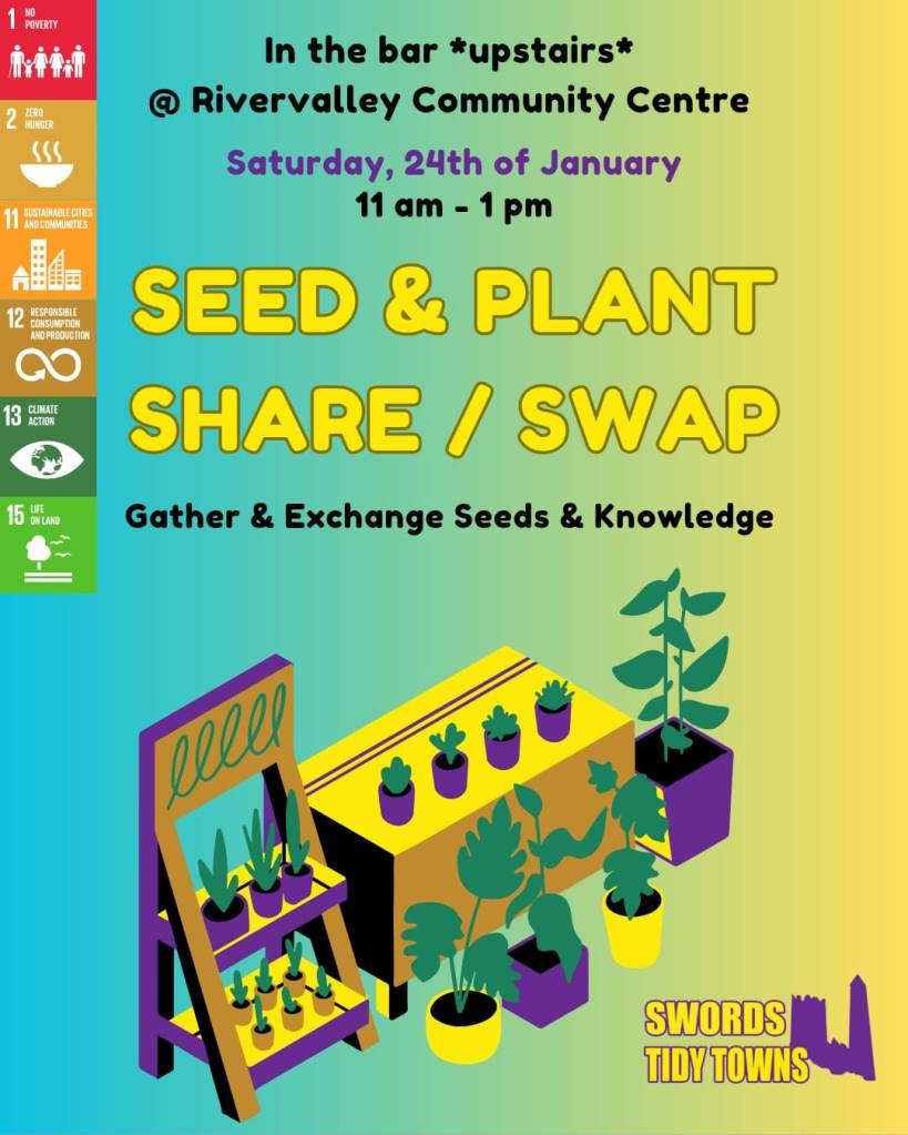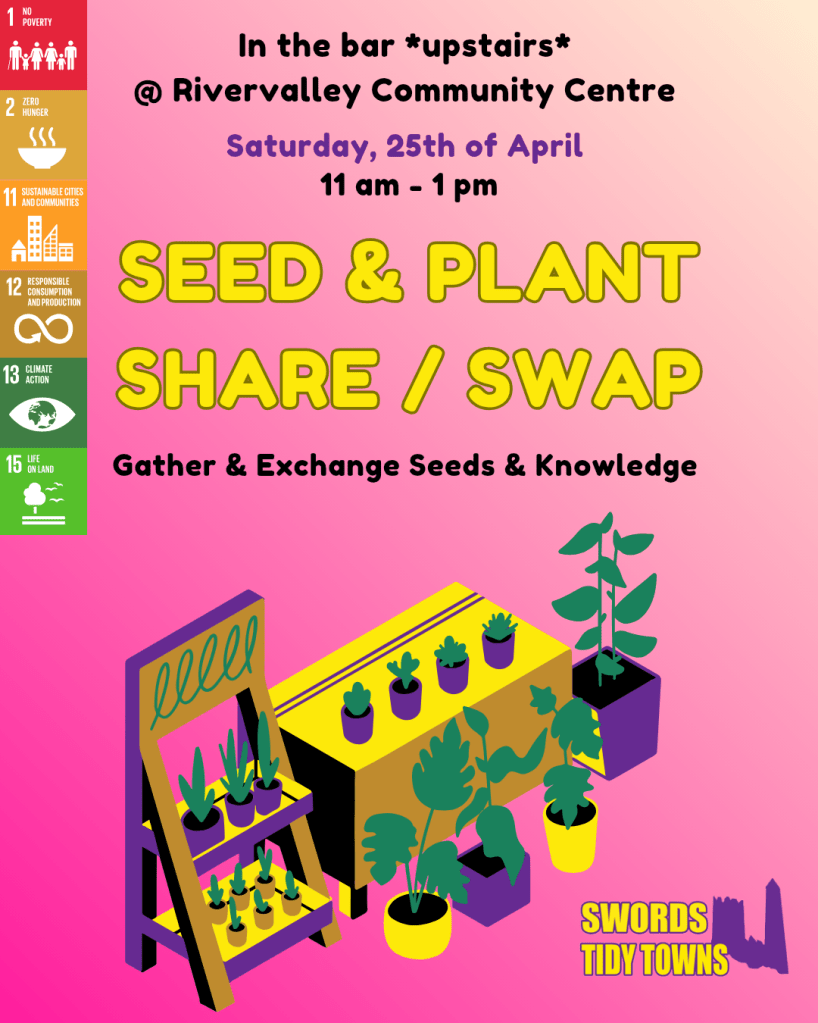 Here at Swords Tidy Towns, we’re buzzing with excitement for our Seed & Plant Swap & Share events in 2025! We’re happy to announce that due to high interest and demand, we’re doubling our events this year, from three to six!